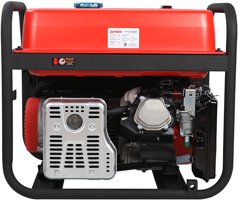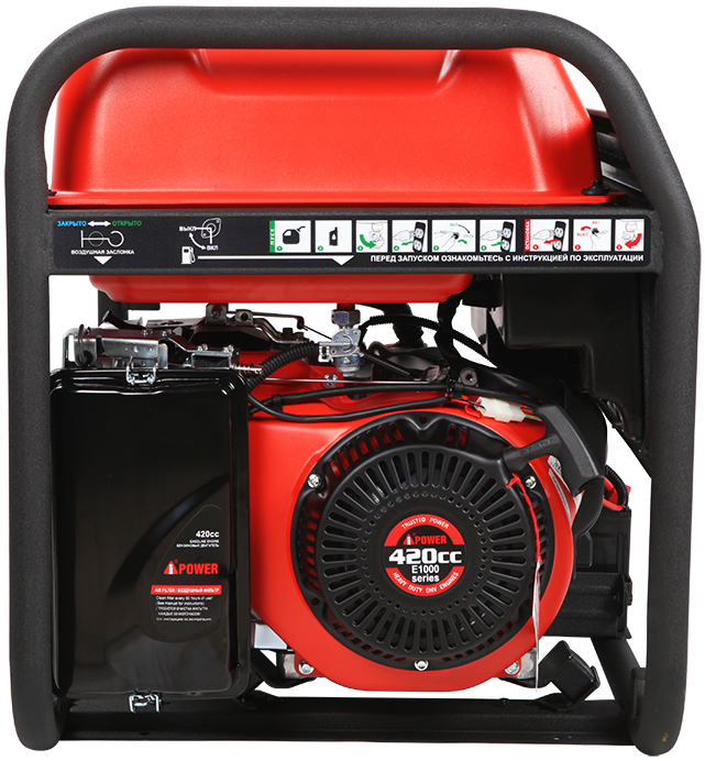 A-iPower A6500EA оснащен компактным гильзованным 4-тактным OHV-двигателем объемом 420 куб. см с электрическим стартером. На панели управления находятся две стандартные розетки 230В/16А