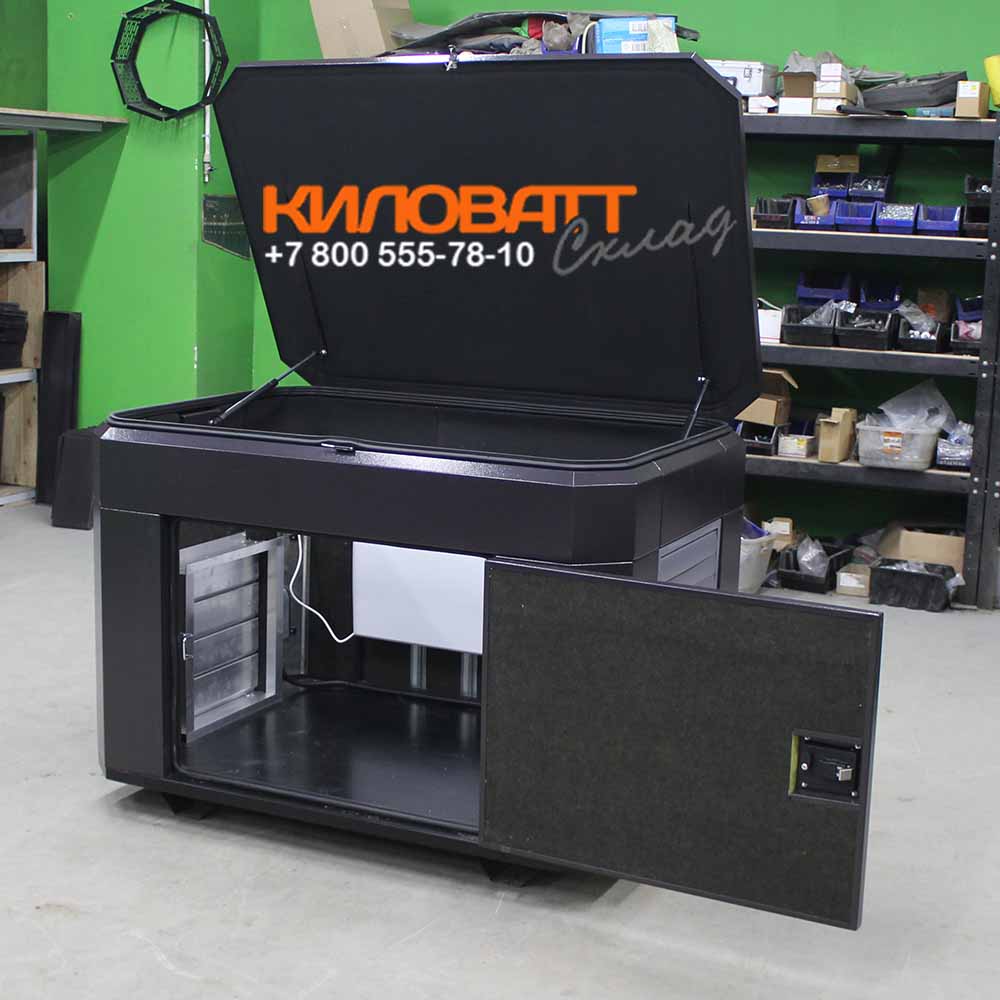 - Удобный доступ: Верхняя крышка оснащена газовыми пружинными амортизаторами, позволяющими легко и плавно открывать и надежно фиксировать ее в открытом положении. Две боковые двери, в сочетании с верхней крышкой, обеспечивают удобный доступ к генератору с двух сторон для проведения технического обслуживания.